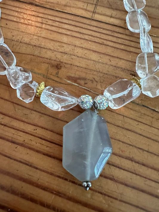 Crystal and Pink Stone Original Necklace Jewelry Designed by Taytem Barth