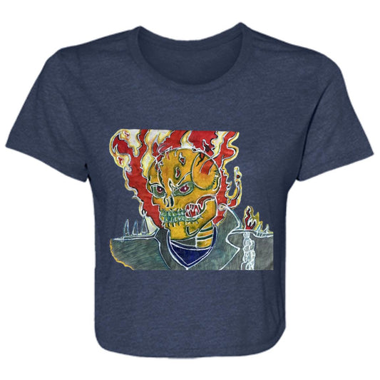 Ladies' Skeleton On Fire Original Artwork Flowy Cropped Tee