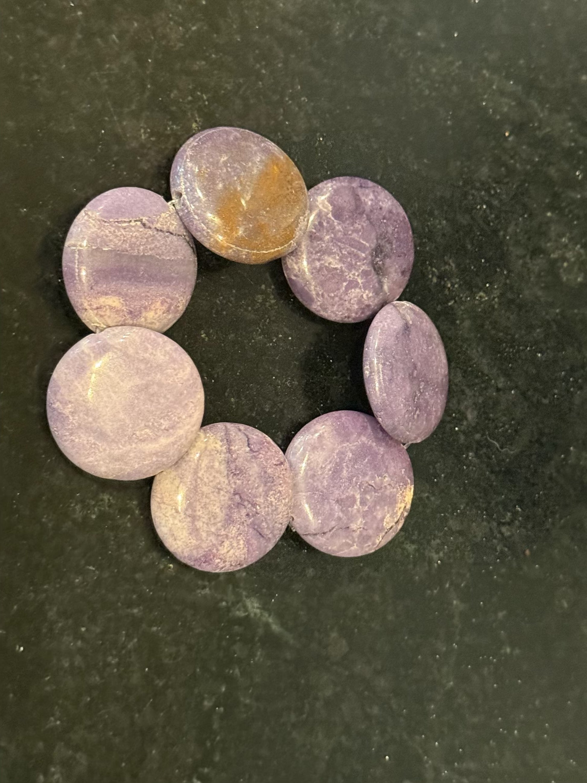 Original designed bracelet with natural smooth stones and glass. They are on a stretchy band so they fit all sizes. Give one to someone on your favorites list today!