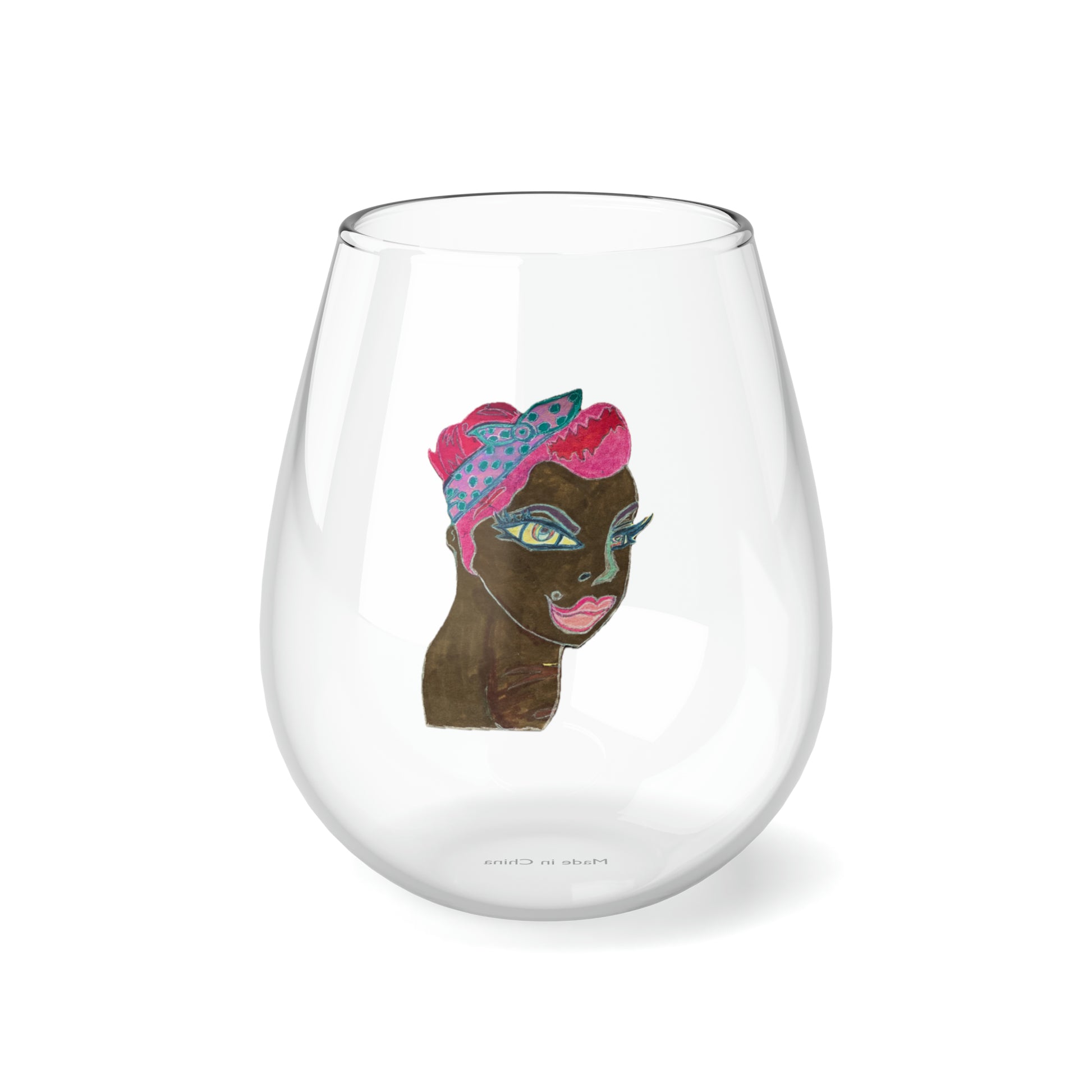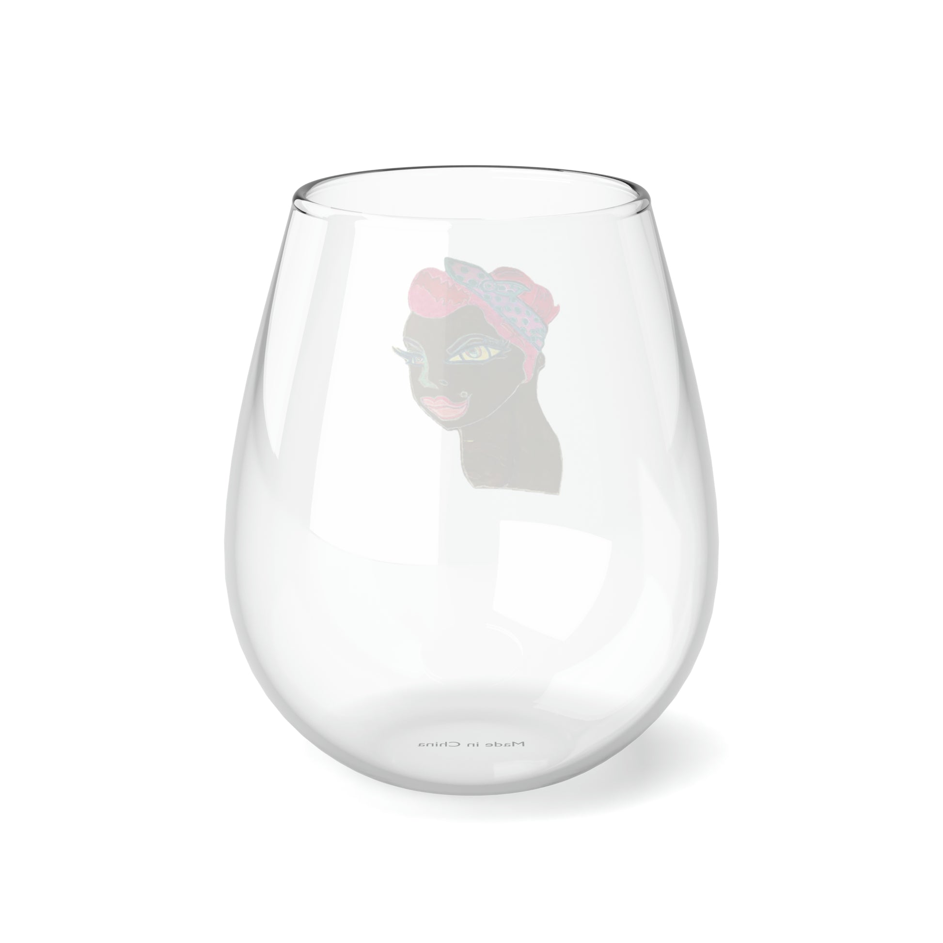 Folk Art Stemless Wine Glass, 11.75oz