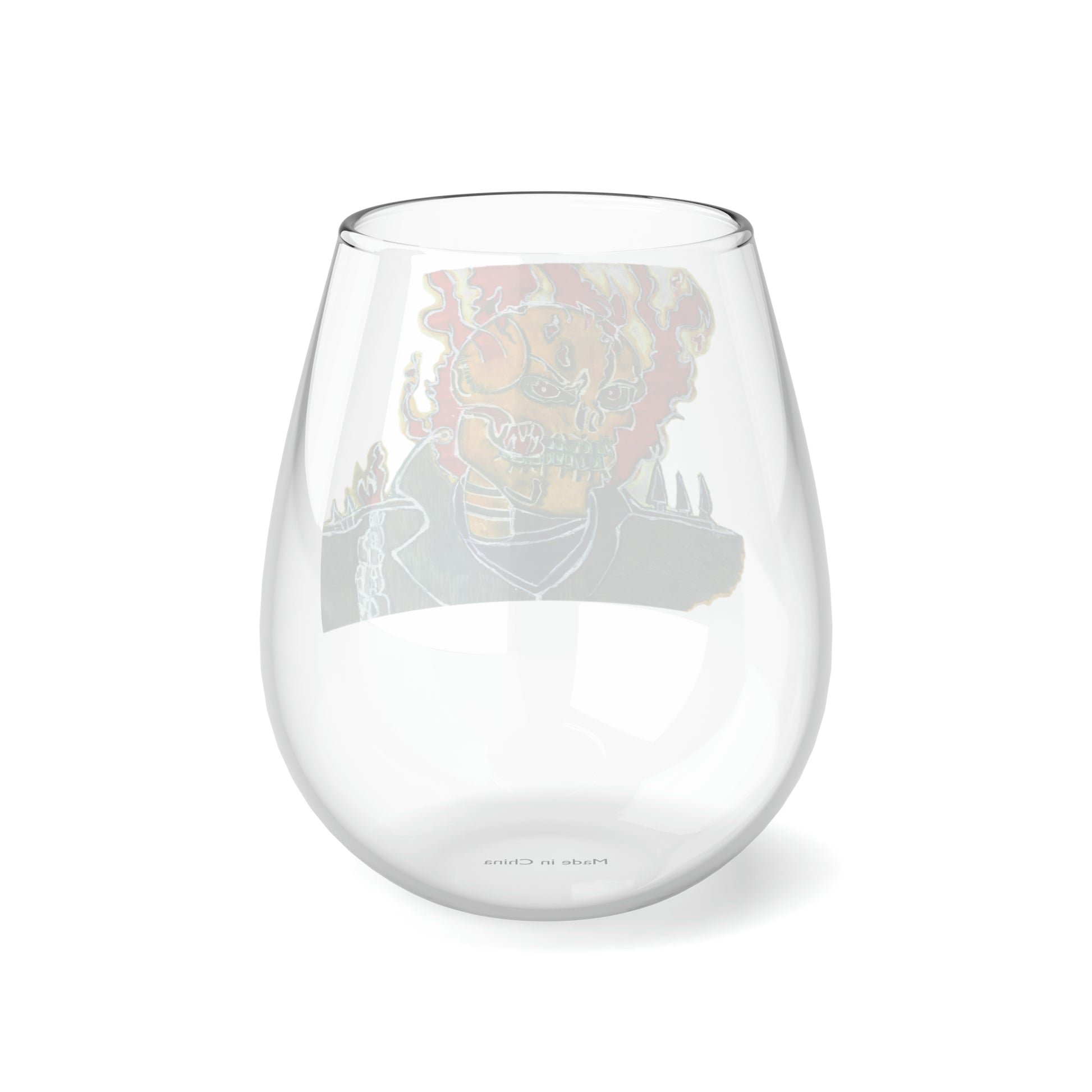 Skeleton On Fire Stemless Wine Glass, 11.75oz