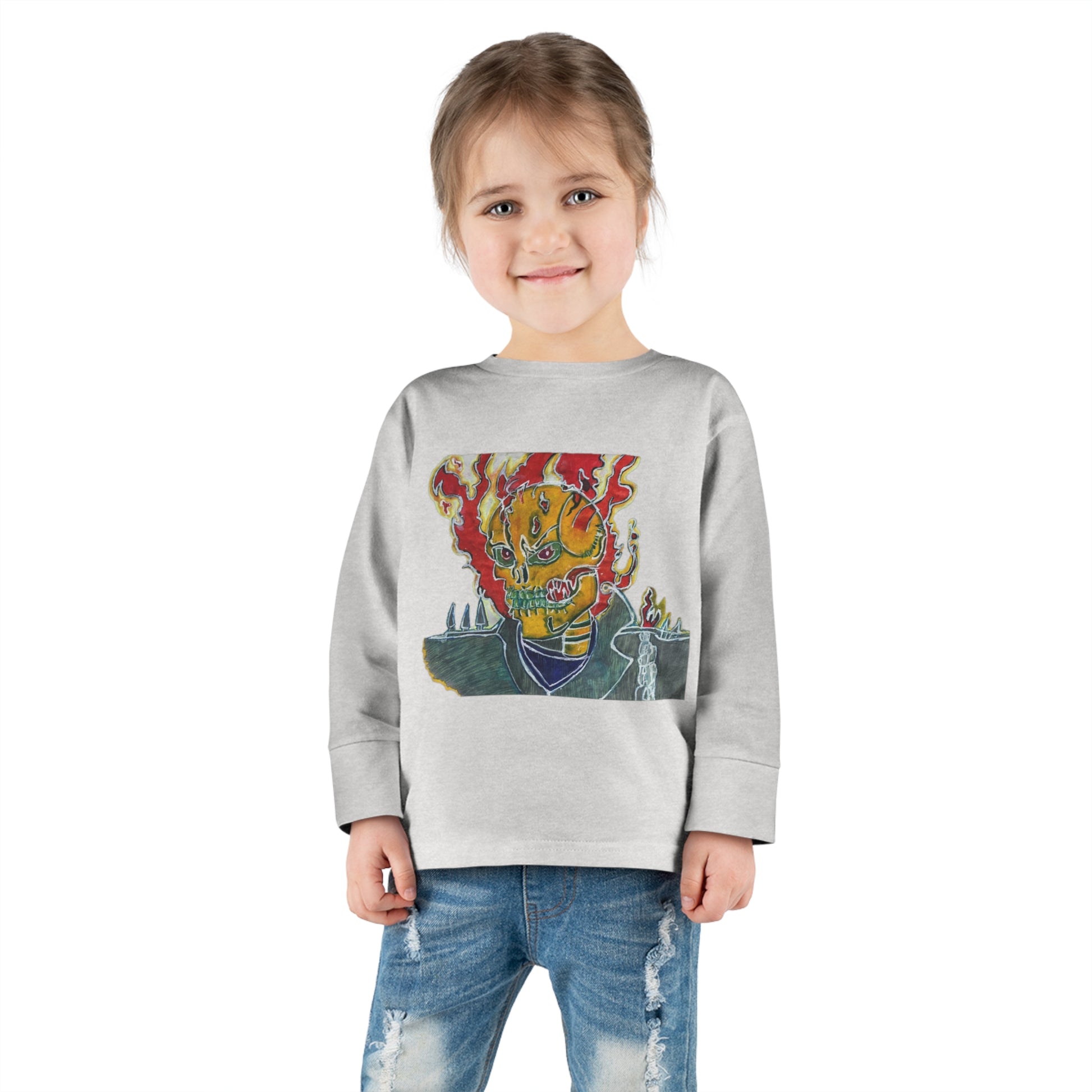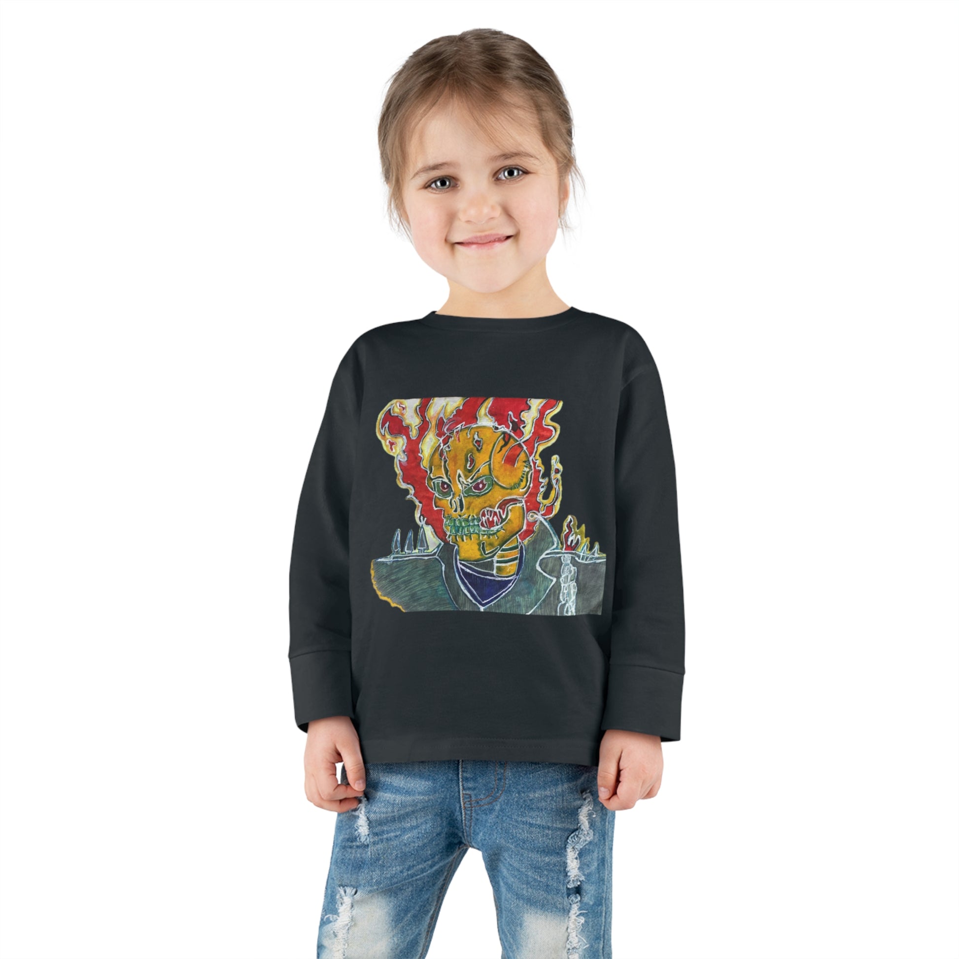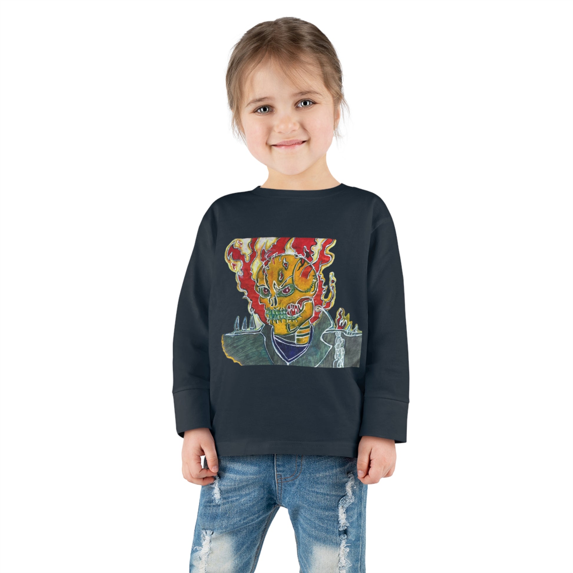 Skeleton On Fire Toddler Long Sleeve Tee